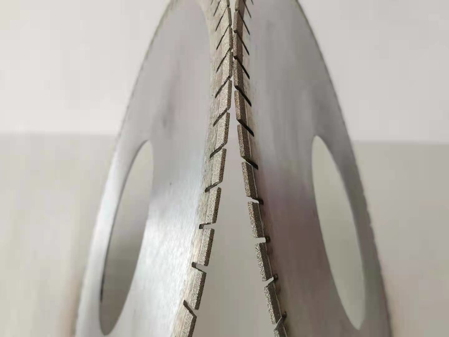 Pisau Berlian dirancang untuk pemotongan cepat marmer & granit dalam chipping yang sangat terbatas. Segmen tersebut ditekan kembali dalam pengepresan dingin dan kemudian pengepresan panas disinter, proses tersebut memberikan segmen dengan kepadatan tinggi untuk berlian penahan yang kuat dan dengan demikian memberikan kinerja pisau yang lebih baik dan umur yang lebih lama.
