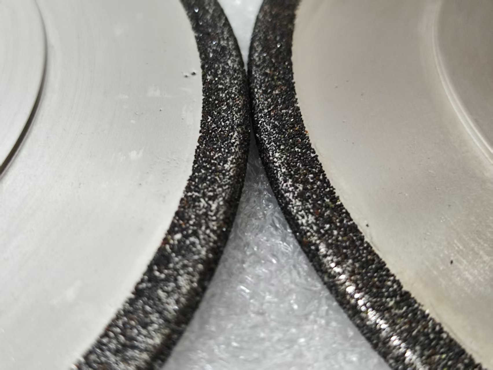 Roda penggiling CBN berjalan lebih dingin daripada roda penggiling konvensional sehingga mengurangi sulit untuk mendeteksi retakan stres di band