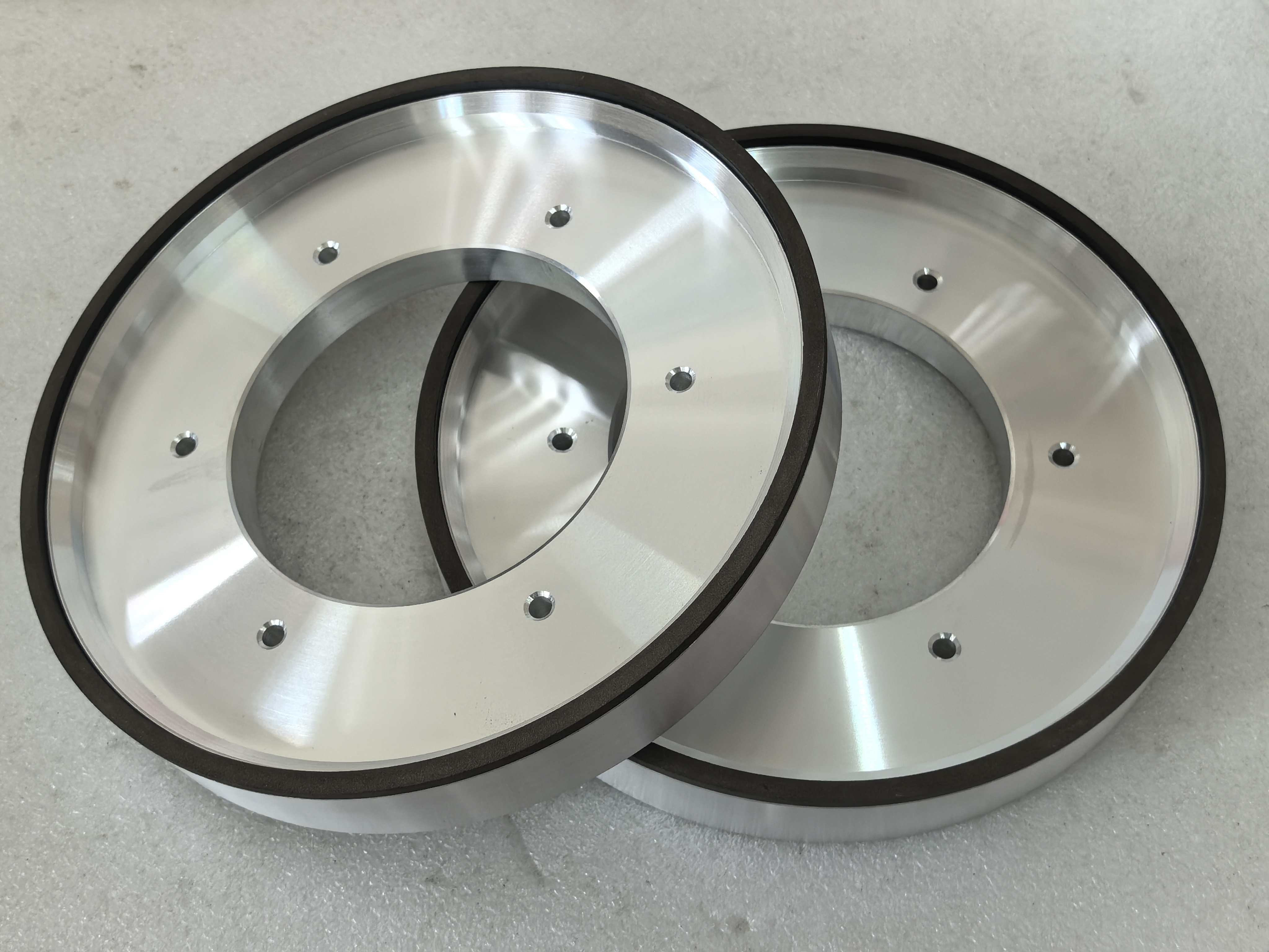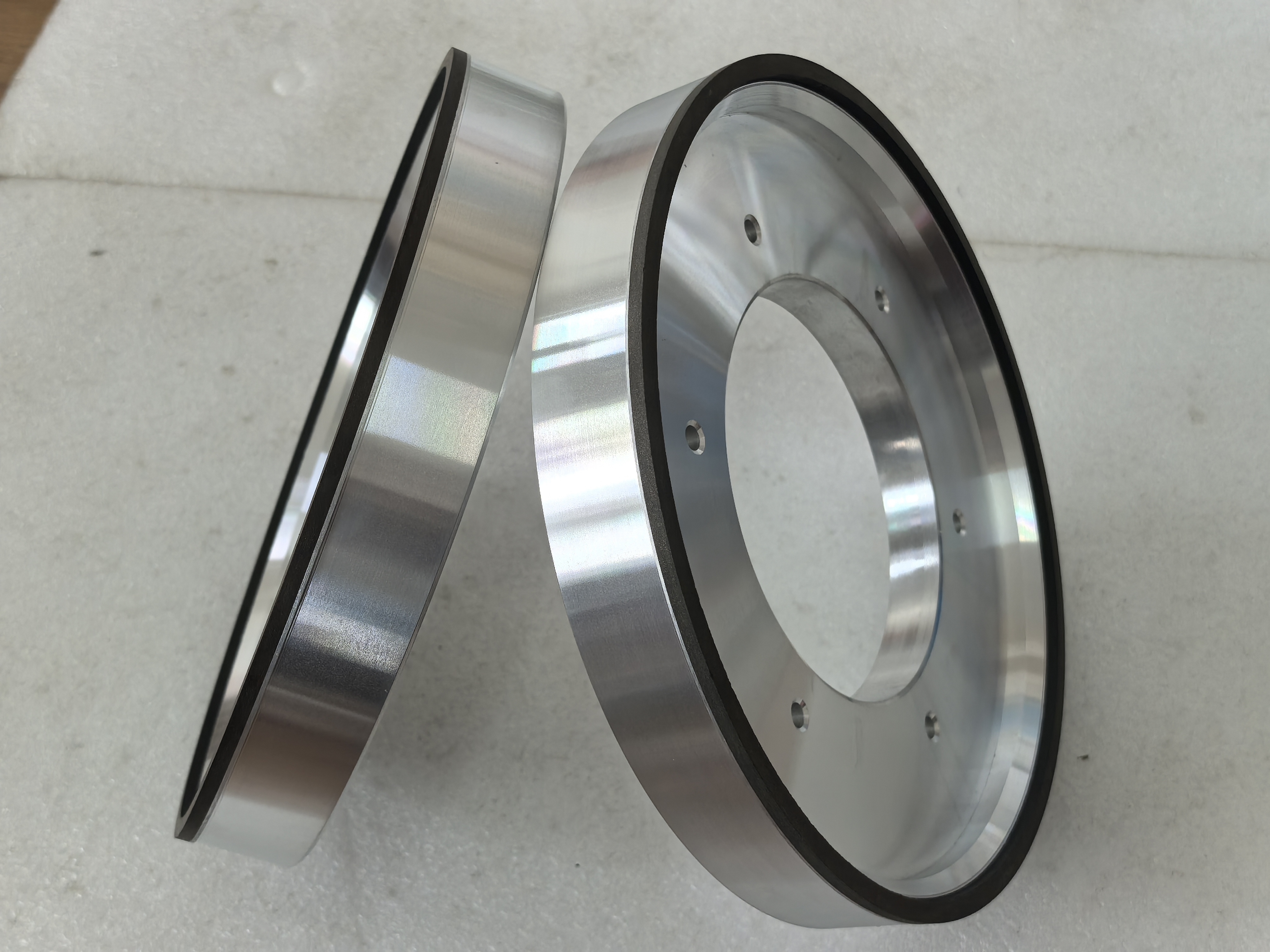 Roda gerinda berlian ikatan resin adalah alat gerinda presisi efisiensi tinggi yang menggabungkan sifat superkeras berlian dan elastisitas resin serta banyak digunakan dalam bidang pemesinan presisi tinggi. Umumnya terdiri dari matriks, pengikat, dan lapisan abrasif. Substrat biasanya terbuat dari paduan aluminium atau baja untuk memastikan kekuatan struktural dan memfasilitasi pemasangan; pengikat biasanya resin fenolik, resin epoksi, atau poliimida, yang memberikan elastisitas dan memiliki suhu pengawetan rendah untuk menghindari kerusakan termal pada berlian; lapisan abrasif terbuat dari campuran partikel berlian dan pengikat resin, dan ukuran partikel berlian dapat disesuaikan sesuai permintaan (dari gerinda kasar hingga gerinda super halus).